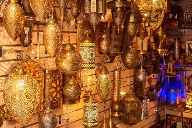 Ramadan est le mois des lumières tamisées. Après le jeûne diurne, la maison s’illumine en douceur à l’heure du maghrib. Les lanternes traditionnelles — fanous — diffusent une lumière dorée qui crée instantanément l’atmosphère recherchée. Oubliez les néons agressifs : on privilégie les bougies LED, les guirlandes lumineuses discrètes et les luminaires en laiton perforé.
